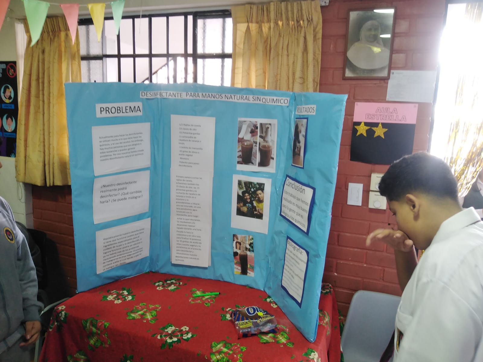 Nos sentimos orgullosos de destacar el proyecto innovador presentado por [Nombre del Alumno] durante nuestro último evento del "Día del Logro". Este joven científico se aventuró en el mundo de la química para crear un desinfectante para manos, pero con un giro único: está completamente libre de químicos agresivos.