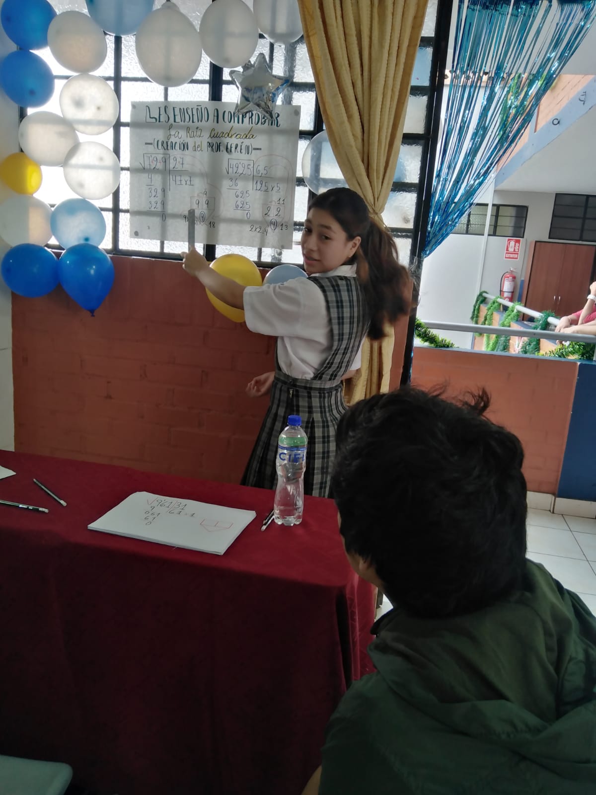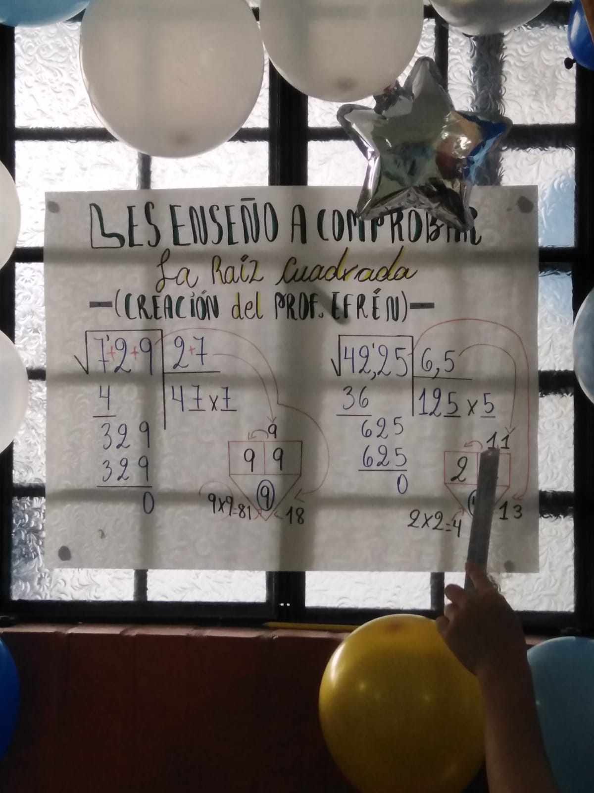 Durante el reciente evento académico, una destacada alumna tuvo el honor de presentar un método único y efectivo para comprobar raíces cuadradas. Este método, ingeniosamente desarrollado por nuestro talentoso profesor "Efrén", ha generado un gran impacto en nuestra enseñanza de matemáticas.